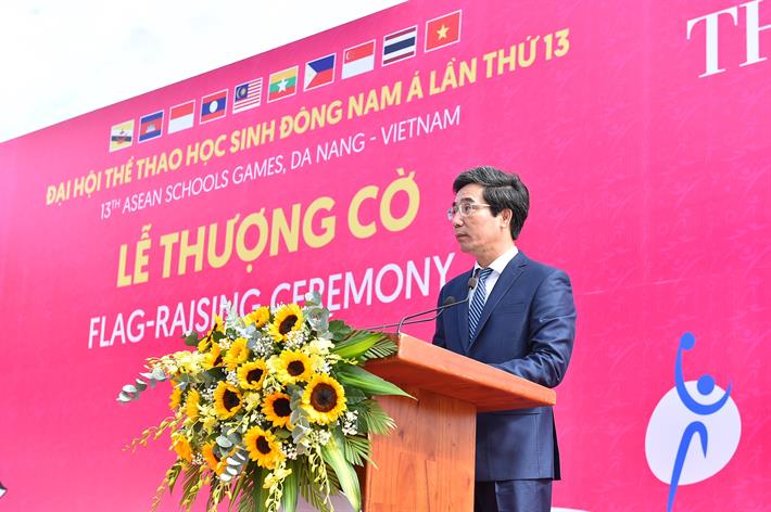 Phát biểu tại buổi lễ, ông Trần Chí Cường, Phó Chủ tịch UBND thành phố Đà Nẵng cho biết, Đà Nẵng rất vinh dự đại diện cho Việt Nam tổ chức ASG 13, xác định việc đăng cai tổ chức Đại hội vừa là quyền lợi, vừa là nghĩa vụ, trách nhiệm của nước chủ nhà đối với khu vực Đông Nam Á. Đà Nẵng sẽ nỗ lực hết mình để thực hiện tốt nhất các yêu cầu của Hội đồng Thể thao học sinh Đông Nam Á, Ban Tổ chức Đại hội.