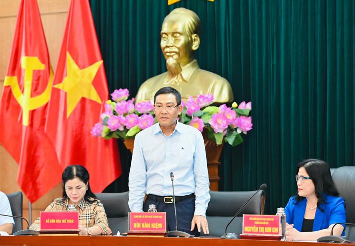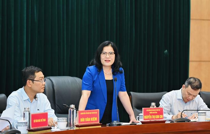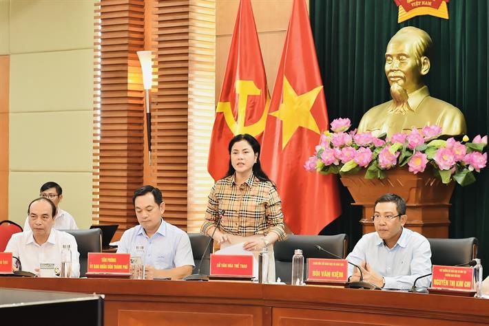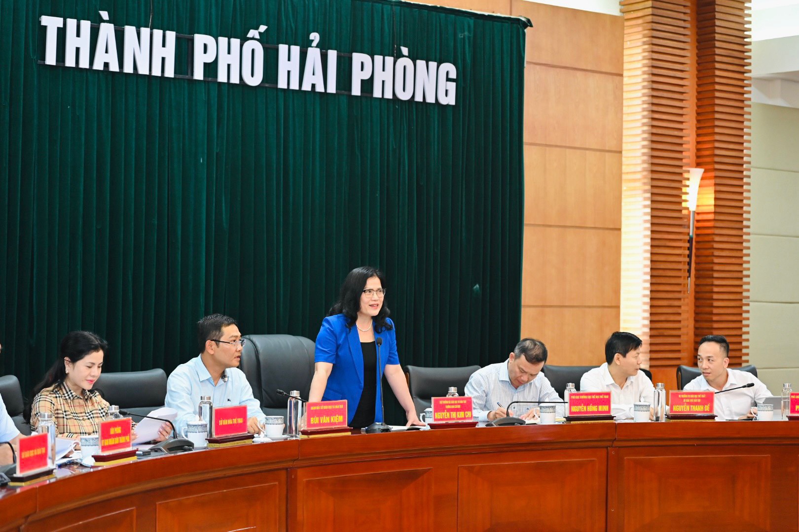 Giám đốc Sở Văn hóa và Thể thao Hải Phòng Trần Thị Hoàng Mai trao đổi tại cuộc họp