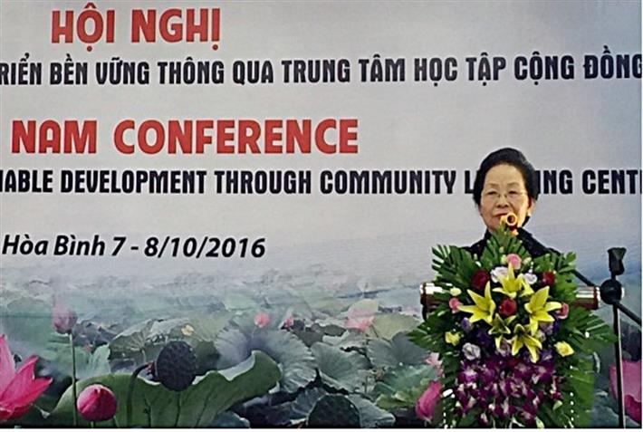 Ngày 7-8/10/2016, Hội Khuyến học Việt Nam và Bộ GDĐT, Viện học tập suốt đời của UNESCO, Viện nghiên cứu phát triển xã hội học tập (RIDLS) đã phối hợp tổ chức Hội nghị quốc tế “Thúc đẩy giáo dục vì sự phát triển bền vững thông qua Trung tâm học tập cộng đồng” tại tỉnh Hòa Bình.
