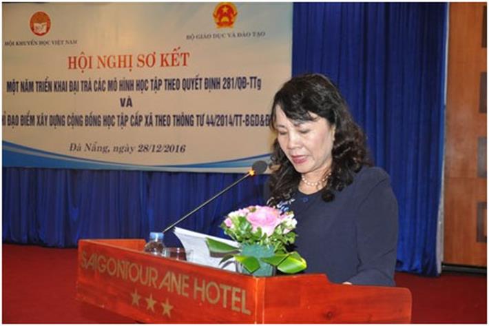 Ngày 28/12, Bộ Giáo dục và Đào tạo đã phối hợp với Hội Khuyến học Việt Nam tổ chức Hội nghị sơ kết 01 năm triển khai chương trình đại trà các mô hình học tập theo quyết định 281/QĐ-TTg và chỉ đạo điểm xây dựng “Cộng đồng học tập” cấp xã theo Thông tư số 44/2014/TT-BGDĐT. Tham dự Hội nghị có TS. Nguyễn Thị Nghĩa – Thứ trưởng Bộ GD&ĐT, GS.TS, NGƯT Nguyễn Thị Doan – Chủ tịch Hội Khuyến học Việt Nam, GS.TS Phạm Tất Dong - Phó Chủ tịch kiêm Tổng thư ký Hội Khuyến học Việt Nam và đại diện nhiều cơ quan, tổ chức khác ở Trung ương và địa phương.