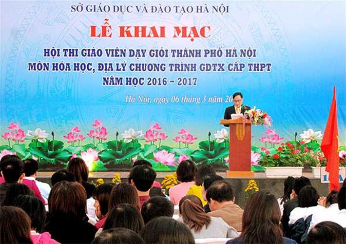 Năm học 2016-2017, Sở GDĐT Hà Nội tổ chức thi Giáo viên dạy giỏi ở bộ môn Hóa học và Địa lý. Tham dự Hội thi có 35 giáo viên tiêu biểu đến từ các Trung tâm GDNN- GDTX trên địa bàn Thủ đô. Các thầy cô giáo dự thi sẽ trải qua hai phần thi: phần thi lý thuyết (kiểm tra năng lực hiểu biết về kiến thức chuyên môn, nghiệp vụ) và phần thi thực hành (giảng dạy 2 tiết trong chương trình GDTX cấp THPT). Phần thi thực hành sẽ diễn ra từ ngày 07/3 đến hết ngày 14/3/2017 tại 5 cụm thi tại các quận huyện.