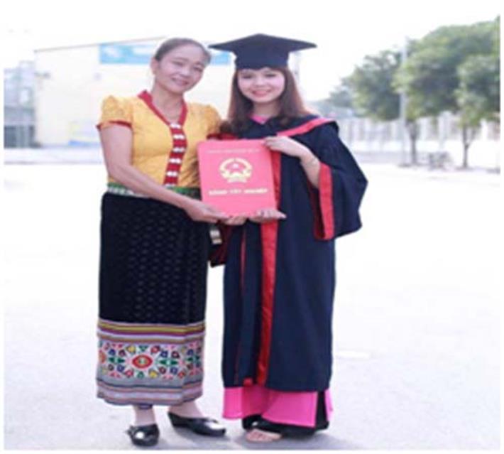 Pay Thị Hà chụp ảnh kỷ yếu cùng mẹ.