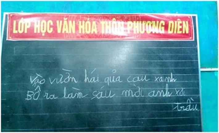 Khi ánh nắng chiều tắt, xẩm tối là khi lớp học bắt đầu. Nhìn các mệ các chị ai cũng say sưa đánh vần, phát âm từng chữ cái mà thấy cảm động và thương cho tấm lòng của cô Hiền, cô Nở cũng như sự hiếu học của các “học trò” đã là cha mẹ, ông bà. Mọi người trong lớp rất thương yêu nhau, biết chia sẻ, giúp đỡ nhau để cùng tiến bộ. Những nét chữ đầy cố gắng vẫn còn thơm mùi mực, những tiếng đánh vần ngọng nghịu cứ văng vẳng, và ước mơ về một ngày mai tươi sáng của bà con vùng sóng nước Phú Diên sẽ không còn xa nữa.