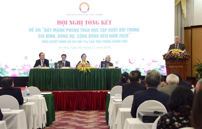 Ngày 30/11, Hội Khuyến học Việt Nam tổ chức Hội nghị tổng kết “Đề án đẩy mạnh phong trào học tập suốt đời trong gia đình, dòng họ, cộng đồng đến năm 2020” theo Quyết định 281/QĐ-TTg của Thủ tướng Chính phủ (Đề án 281). Nguyên Phó Chủ tịch nước Nguyễn Thị Doan, Chủ tịch Hội Khuyến học Việt Nam, Phó Thủ tướng Chính phủ Vũ Đức Đam, Bộ trưởng Bộ GDĐT Phùng Xuân Nhạ tham dự Hội nghị.