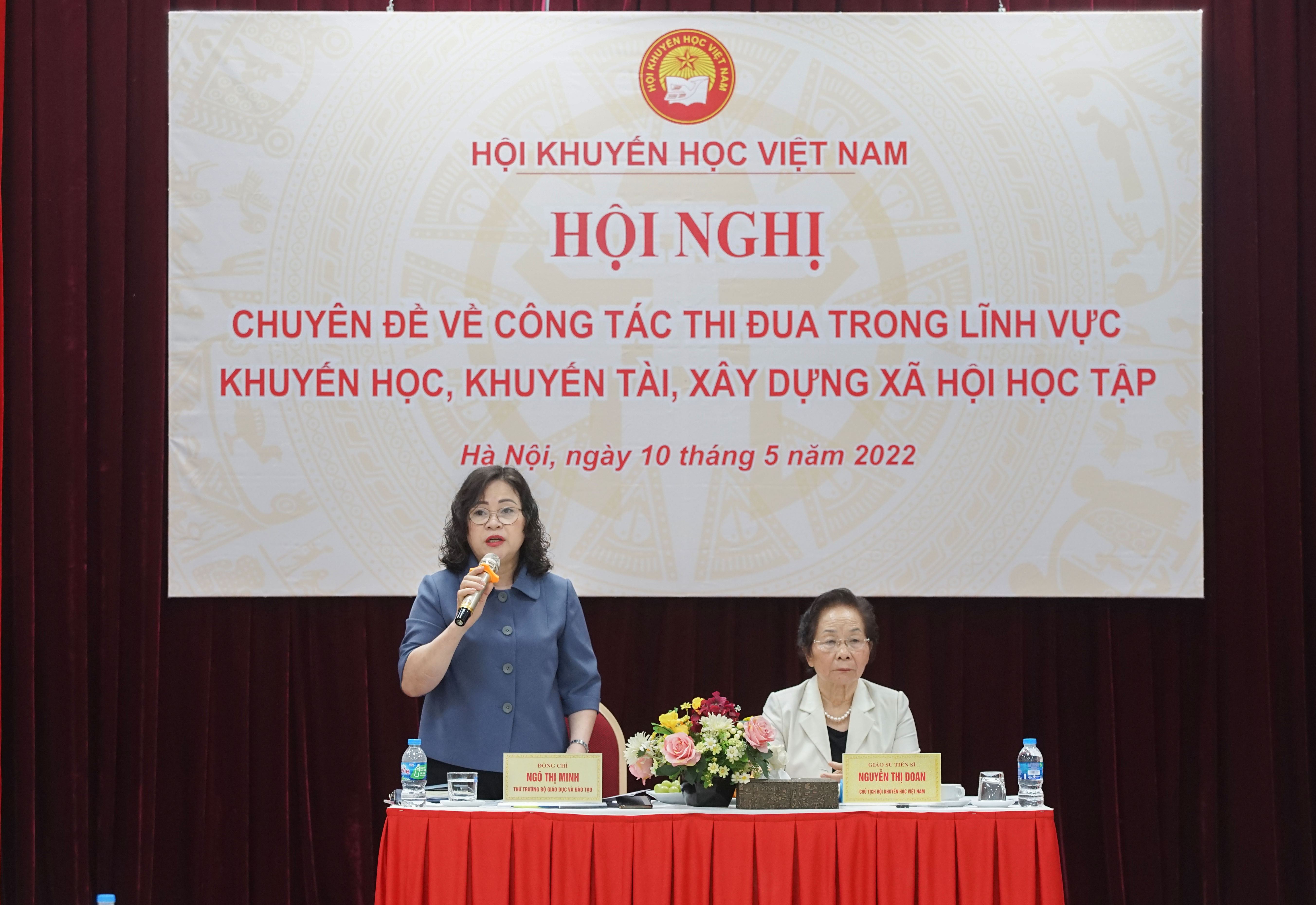 Phát biểu khai mạc hội nghị, nguyên Phó Chủ tịch nước, Chủ tịch Hội Khuyến học Việt Nam Nguyễn Thị Doan khẳng định, trong các mục tiêu của Nghị quyết Đại hội lần thứ XIII của Đảng, có mục tiêu đột phá về nâng cao chất lượng giáo dục và đào tạo. Từ đó, đã có nhiều chương trình hành động, nhiều văn bản để nâng cao chất lượng giáo dục và đào tạo, khuyến học, khuyến tài, xây dựng xã hội học tập. Gần đây nhất là Chỉ thị số 19 của Thủ tướng về phát động các phong trào thi đua, thực hiện các chỉ tiêu do Đại hội XIII đề ra trong bối cảnh mới, trong đó có thi đua khuyến học, khuyên tài, xây dựng xã hội học tập.