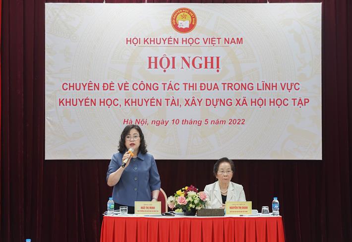 Thứ trưởng Ngô Thị Minh cảm ơn các ý kiến đóng góp của các đại biểu tham dự hội nghị vào nội dung dự thảo tờ trình xin ý kiến Thủ tướng Chính phủ về việc phát động Phong trào thi đua “Cả nước thi đua khuyến học, khuyến tài, xây dựng xã hội học tập”. Theo đó, phong trào thi đua sẽ được tổ chức có nội dung, hình thức phong phú, phù hợp, thiết thực nhằm vận động toàn dân tích cực tham gia phong trào học tập suốt đời để xây dựng cả nước thành một xã hội học tập, gắn với các cuộc vận động, phong trào thi đua khác.