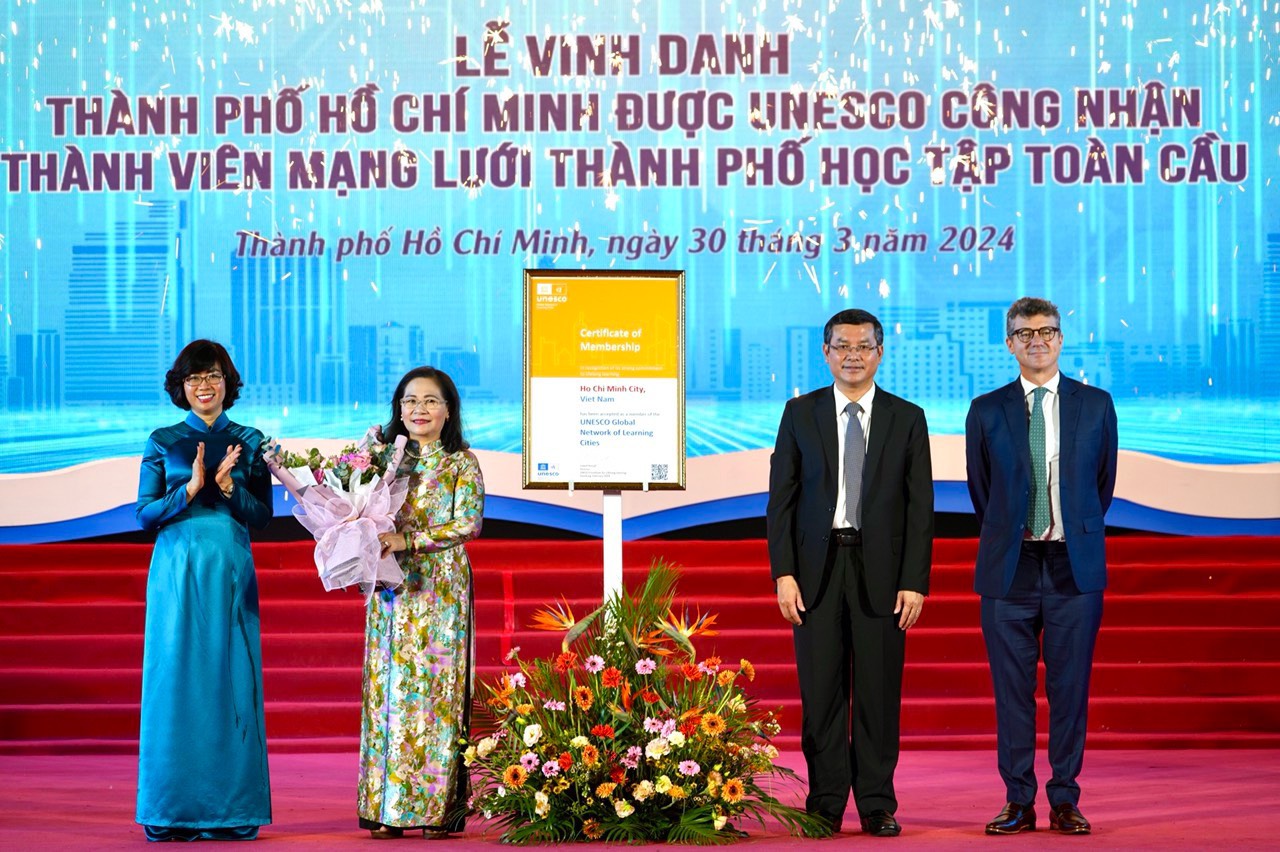 Tối 30/3, Uỷ ban nhân dân Thành phố Hồ Chí Minh (TPHCM) tổ chức Lễ vinh danh TPHCM được UNESCO công nhận thành viên Mạng lưới Thành phố học tập toàn cầu.