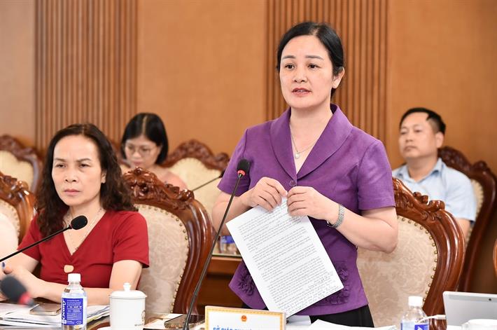 Phó Giám đốc Sở GDĐT Lạng Sơn Phan Mỹ Hạnh trao đổi tại phiên họp