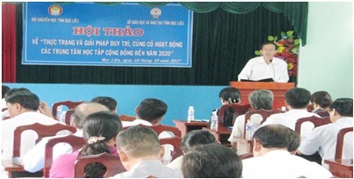 Hội Khuyến học tỉnh Bạc Liêu và Sở GD&ĐT tỉnh Bạc Liêu vừa phối hợp tổ chức hội thảo “Thực trạng và giải pháp duy trì, củng cố hoạt động các Trung tâm Học tập cộng đồng đến năm 2020”.