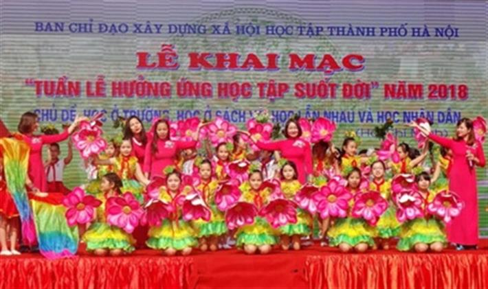 Tại Hà Nội, trong tuần lễ hưởng ứng học tập suốt đời năm 2018 với chủ đề “Học ở trường, học ở sách vở, học lẫn nhau và học nhân dân”, các phòng GDĐT, các trường học đồng loạt tổ chức nhiều hoạt động thiết thực để hưởng ứng như: Tọa đàm, hội thảo về khuyến học, khuyến đọc và xây dựng xã hội học tập tại các thư viện, nhà văn hóa; kết hợp tổ chức triển lãm, trưng bày sách, tư liệu phục vụ các sự kiện chính trị, văn hóa của địa phương; phát động phong trào thi đua dạy tốt, học tốt, các hoạt động khuyến học, thể dục thể thao, văn hóa văn nghệ, hoạt động chuyên đề, CLB; chương trình thu gom, tặng sách tại các trường học; tuyên dương, khen thưởng những điển hình tiên tiến dạy tốt, học tốt.