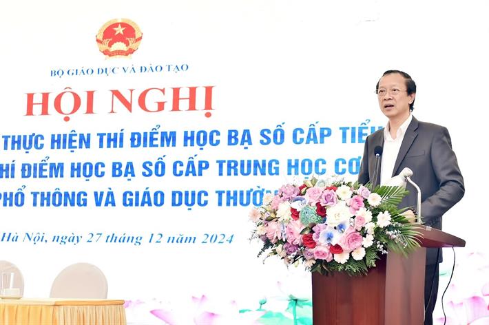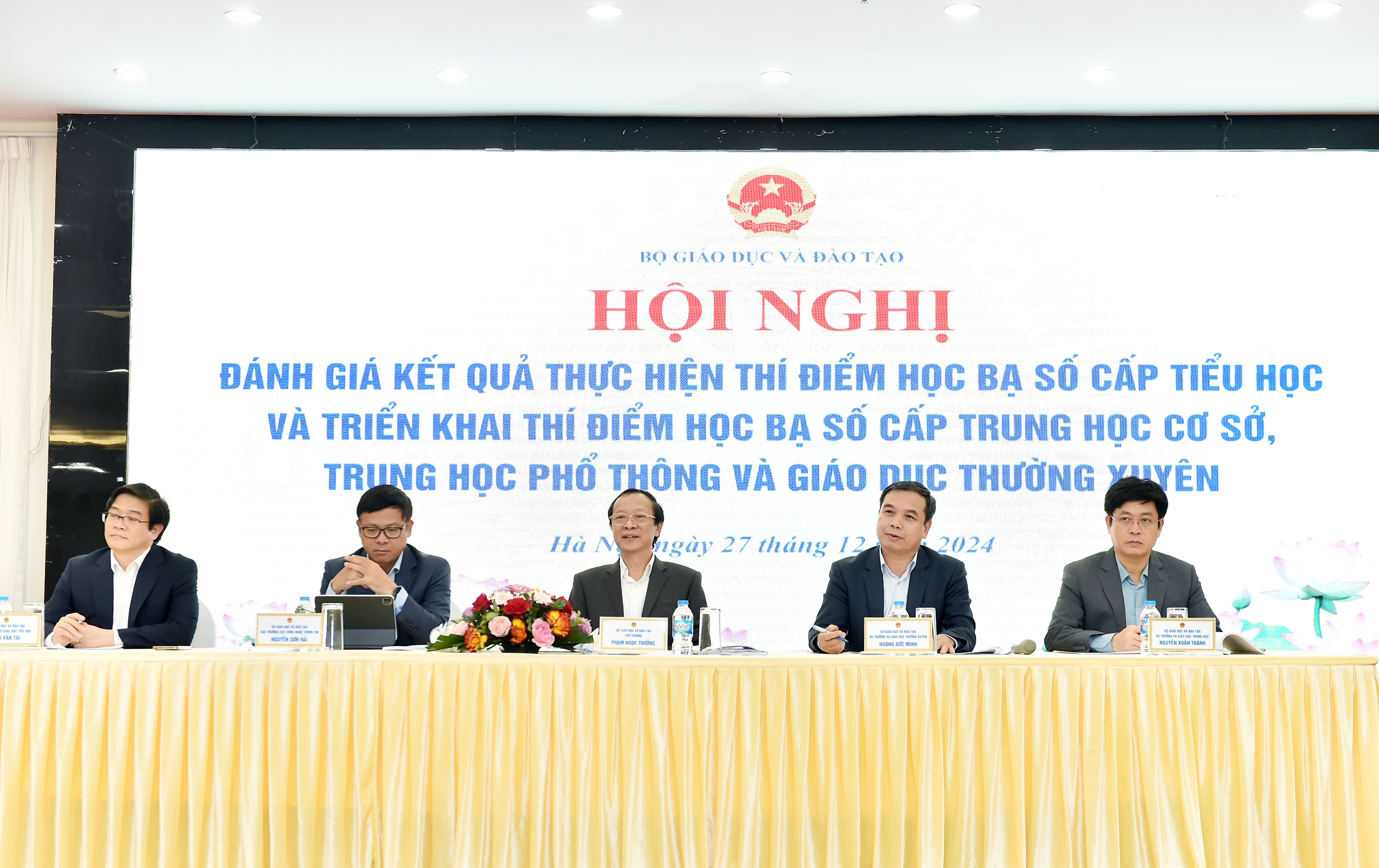 Ngày 27/12, Bộ Giáo dục và Đào tạo (GDĐT) tổ chức Hội nghị đánh giá kết quả thực hiện thí điểm học bạ số cấp tiểu học và triển khai thí điểm học bạ số cấp trung học cơ sở, trung học phổ thông và giáo dục thường xuyên. Thứ trưởng Phạm Ngọc Thưởng chủ trì hội nghị.