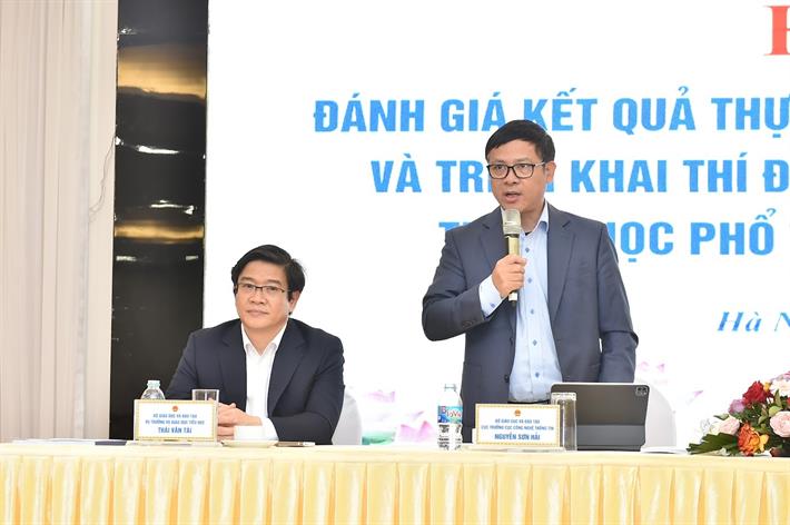 Đối với các đơn vị thuộc Bộ GDĐT, Thứ trưởng đề nghị tổng hợp ý kiến góp ý từ các đơn vị, địa phương để tham mưu cho Ban chỉ đạo, từ đó có hướng giải quyết phù hợp; đồng thời tập trung rà soát các văn bản pháp lý liên quan để thống nhất các khái niệm, thuật ngữ, nội hàm khi triển khai.