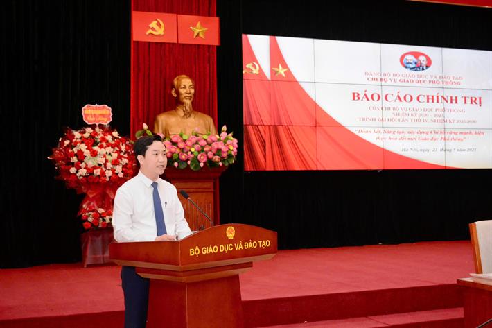 Phát biểu khai mạc đại hội, Bí thư Chi bộ, Vụ trưởng Vụ Giáo dục Phổ thông Thái Văn Tài cho biết: Dưới sự lãnh đạo của Đảng ủy Bộ GDĐT, tập thể lãnh đạo Bộ và với sự quyết tâm, nỗ lực của toàn thể cán bộ, đảng viên, Chi bộ Vụ Giáo dục Phổ thông đã phát huy vai trò hạt nhân chính trị, đoàn kết, sáng tạo.