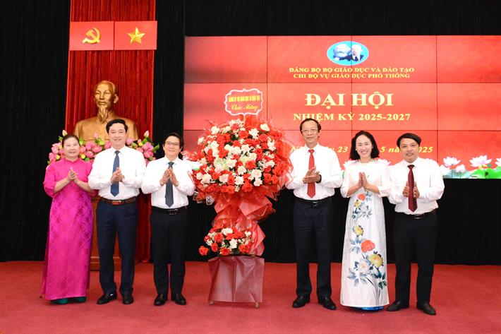 Phát biểu tại đại hội, Phó Bí thư Thường trực Đảng ủy, Thứ trưởng Thường trực Bộ GDĐT Phạm Ngọc Thưởng ghi nhận tinh thần đoàn kết, chủ động, sáng tạo và những kết quả đạt được của Vụ Giáo dục Phổ thông trong thời gian qua.