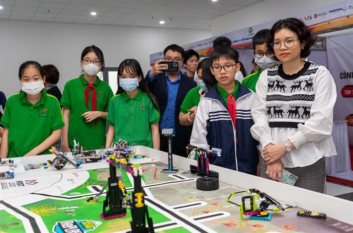 Học sinh và giáo viên các trường phổ thông Hà Nội tham quan triển lãm mô hình học trải nghiệm STEAM Robot LEGO Education