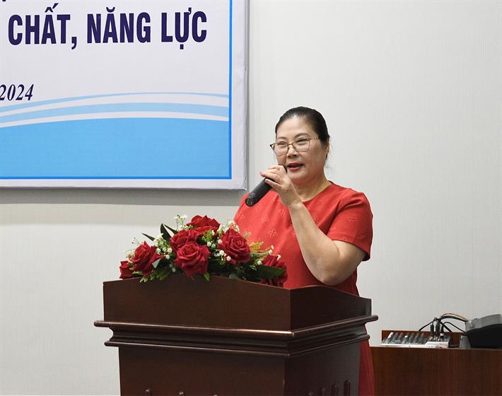Phó Vụ trưởng Vụ Giáo dục Tiểu học Trịnh Hoài Thu phát biểu tại tập huấn