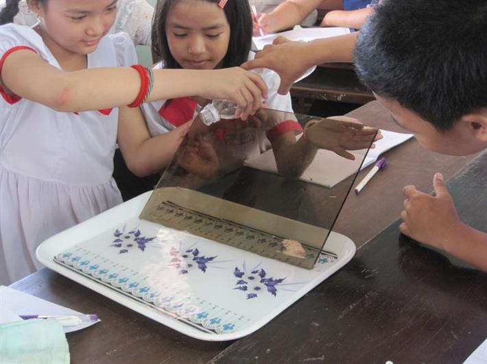 HS Trường Tiểu học Quang Sơn, Tam Điệp, Ninh Bình làm thí nghiệm tìm hiểu về một số tính chất của nước