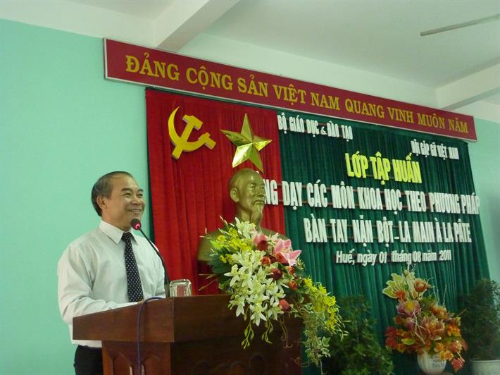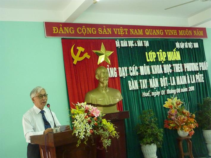 Giáo sư Trần Thanh Vân tại một cuộc tập huấn giáo viên cốt cán về phương pháp “Bàn tay nặn bột”.