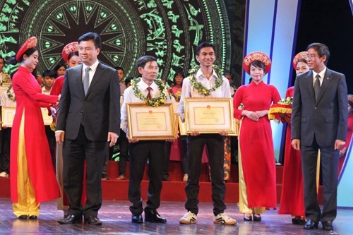 Thầy Khởi nhận bằng khen của Bộ trưởng Bộ GD&ĐT tại Lễ tuyên dương gương người tốt, việc tốt, đổi mới sáng tạo trong dạy và học năm học 2016 - 2017.