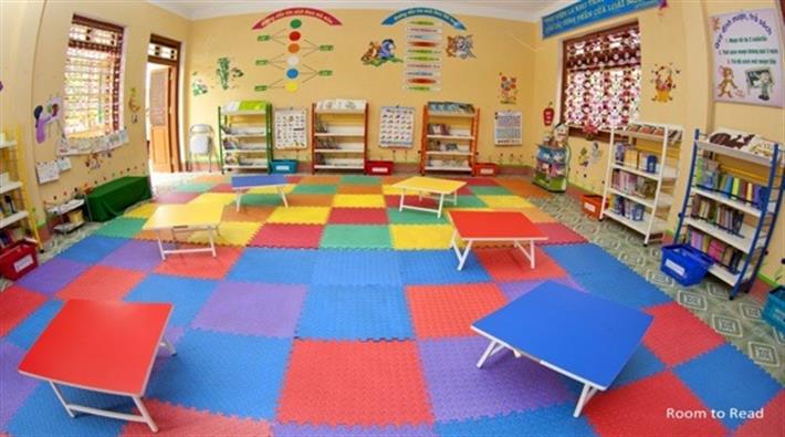 Để thiết lập thư viện thân thiện, Room to Read cung cấp cho mỗi trường 6 kệ sách, 6 bàn thấp, 14m2 thảm, 1 bộ vật phẩm giáo dục và sách để thiết lập thư viện. Sách được cấp làm 3 đợt, với tỉ lệ ít nhất là 5 quyển sách/học sinh/3 lần cấp.