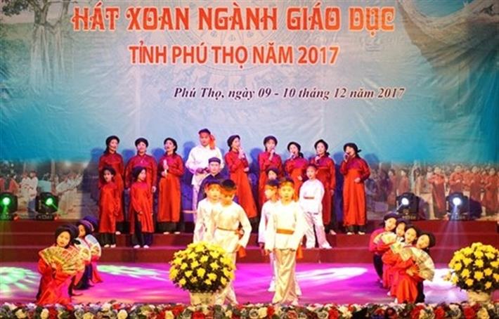 Thực hiện chủ trương giáo dục thông qua di sản, mô hình “Trường học gắn với cuộc sống” của Bộ GD&ĐT, triển khai các chương trình, kế hoạch của UBND tỉnh Phú Thọ về bảo tồn, phát huy giá trị di sản Hát Xoan, đưa Hát Xoan đến với đông đảo công chúng, Sở GD&ĐT Phú Thọ đã phối hợp với Sở VH, TT&DL Phú Thọ tổ chức tập huấn cho đội ngũ giáo viên âm nhạc toàn tỉnh về việc truyền dạy hát Xoan, phương pháp tổ chức hoạt động của các câu lạc bộ, đội văn nghệ Hát Xoan trong các cơ sở giáo dục. Điều này đã thực sự đem lại sức sống mới cho Hát Xoan. Cho đến nay, tất cả các trường Tiểu học, THCS và THPT trên toàn tỉnh đã có giáo viên biết trình diễn và dạy Hát Xoan, đưa Hát Xoan vào giảng dạy thông qua bộ môn âm nhạc. Đồng thời các trường sử dụng Hát Xoan trong các hoạt động giáo dục tập thể, giáo dục ngoài giờ lên lớp, trong các buổi giao lưu văn hóa văn nghệ trong và ngoài nhà trường. Một số Câu lạc bộ Hát Xoan đã tổ chức nhiều chương trình giao lưu và tuyên truyền về giá trị Hát Xoan với Nghệ nhân các phường Xoan, các nghệ nhân truyền cảm hứng hát Xoan cho nhiều thế hệ học sinh. Hát Xoan đã trở thành hoạt động thường ngày ở nhiều trường học, nhất là các trường tiểu học. Kết quả của các hoạt động rất phong phú đó đã được các đoàn thể hiện khi tham gia Liên hoan. Tổng kết Liên hoan, Ban tổ chức đã trao 2 giải Nhất, 4 giải Nhì, 8 giải Ba cho các tập thể xuất sắc và 4 giải Nhất, 8 giải Nhì, 16 giải Ba, 60 giải Khuyến khích cho những tiết mục tiêu biểu. Nhân dịp này, Báo Nhi đồng và Họa Mi Bút Hoa của Trung ương Đoàn Thanh niên Cộng sản Hồ Chí Minh đã trao thưởng cho tiết mục Liên khúc dân ca Xoan của phòng GD&ĐT thành phố Việt Trì, tiết mục xuất sắc của khối Tiểu học. Về dự liên hoan có nhiều tiết mục được dàn dựng công phu, có chất lượng nghệ thuật cao, thể hiện sự chuẩn bị chu đáo, luyện tập nghiêm túc của các đoàn, giúp truyền tải sự đam mê Hát Xoan đến với công chúng. Liên hoan đã thu hút sự quan tâm theo dõi và để lại những ấn tượng sâu sắc đối với đông đảo khán giả cũng như các thầy, cô giáo và các em học sinh toàn tỉnh.