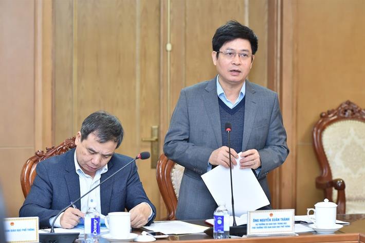 Vụ trưởng Vụ Giáo dục Trung học (Bộ GDĐT) Nguyễn Xuân Thành báo cáo tại phiên họp