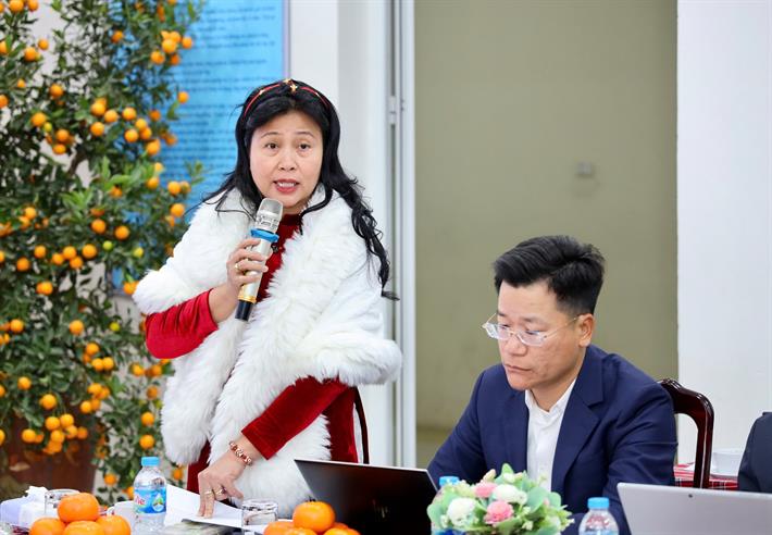 Bà Nguyễn Thanh Hà, Hiệu trưởng Trường THCS Phan Chu Trinh báo cáo việc triển khai Thông tư 29
