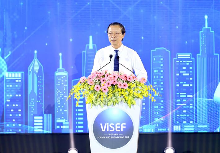 "13 năm qua, Bộ GDĐT cùng các Sở GDĐT đã kiên trì, bền bỉ tổ chức cuộc thi, cuộc thi đã và đang đi đúng hướng Nghị quyết số 57-NQ/TW của Bộ Chính trị. 13 năm ghi dấu bằng nhiều công trình, dự án nghiên cứu khoa học phản ánh trí tuệ, sức sáng tạo của học sinh và nỗ lực của thầy cô giáo", Thứ trưởng nói.