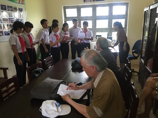 Các nhạc sĩ Hoàng Long, Hoàng Lân dự một giờ học hát của học sinh Trường THCS Đăk Rve, huyện Kon Rẫy, tỉnh Kon Tum. (Ảnh: Thu Hà-UNICEF)
