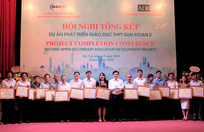 Tại hội nghị, 32 tập thể và 72 cá nhân có thành tích xuất sắc trong chỉ đạo, điều hành và tổ chức thực hiện các hoạt động của dự án Phát triển giáo dục THPT giai đoạn 2 đã được trao tặng Bằng khen của Bộ trưởng Bộ GDĐT.
