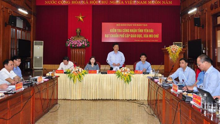 Qua kiểm tra thực tế tại 9 đơn vị cấp huyện và 2 đơn vị xã phường, thị trấn, trường THCS và tại các hộ gia đình trên địa bàn tỉnh Yên Bái, đoàn kiểm tra của Bộ GDĐT đánh giá tỉnh Yên Bái đáp ứng tiêu chuẩn, điều kiện đảm bảo phổ cập giáo dục, xóa mù chữ.