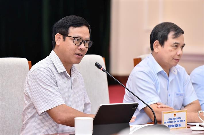 Cục trưởng Cục Công nghệ thông tin, Bộ GDĐT Nguyễn Sơn Hải trao đổi tại hội thảo