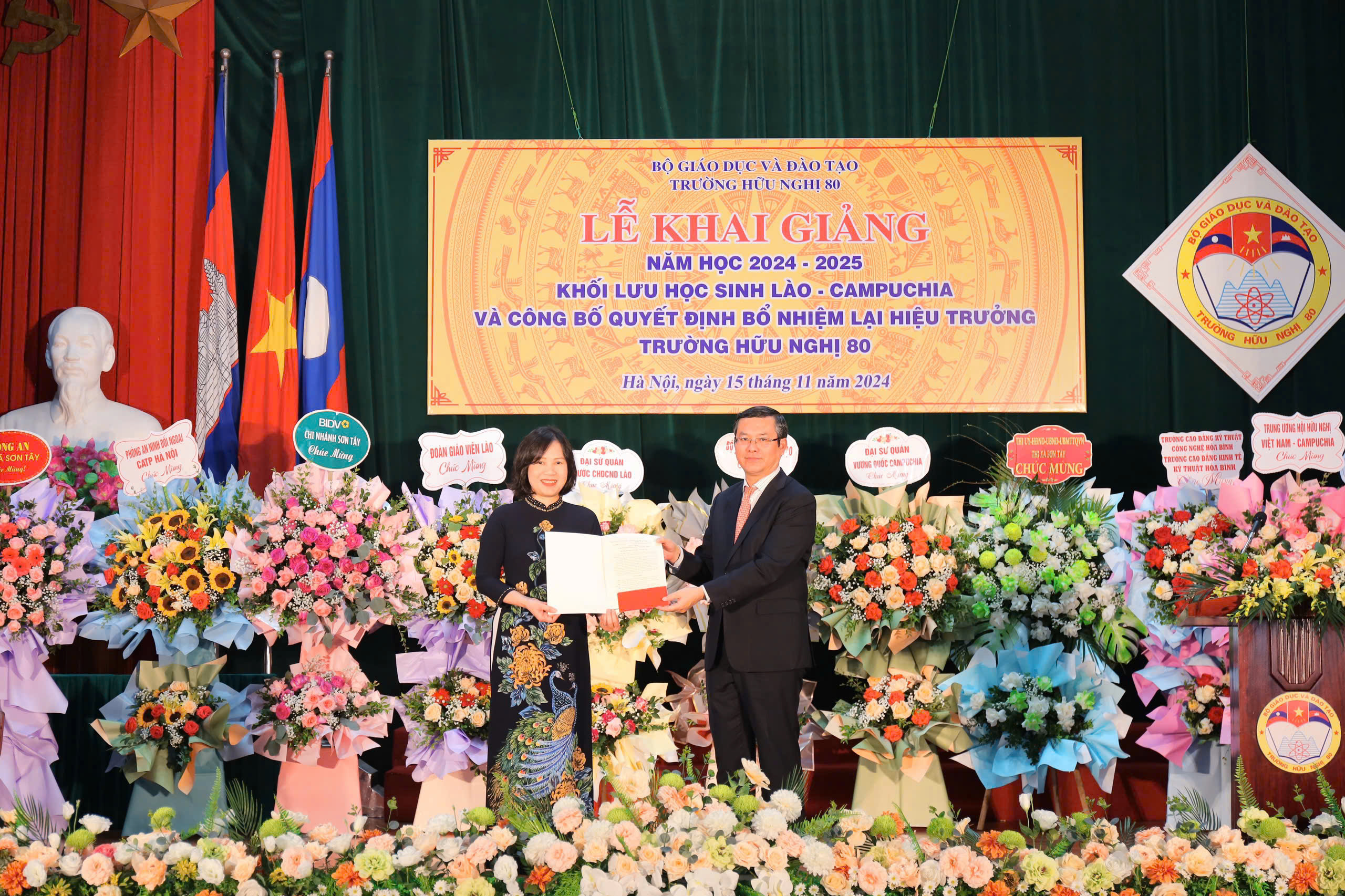 Ngày 15/11, Thứ trưởng Bộ Giáo dục và Đào tạo (GDĐT) Nguyễn Văn Phúc dự lễ khai giảng khóa học Dự bị tiếng Việt năm học 2024-2025 cho lưu học sinh Lào - Campuchia và công bố quyết định bổ nhiệm lại Hiệu trưởng trường Hữu nghị 80.