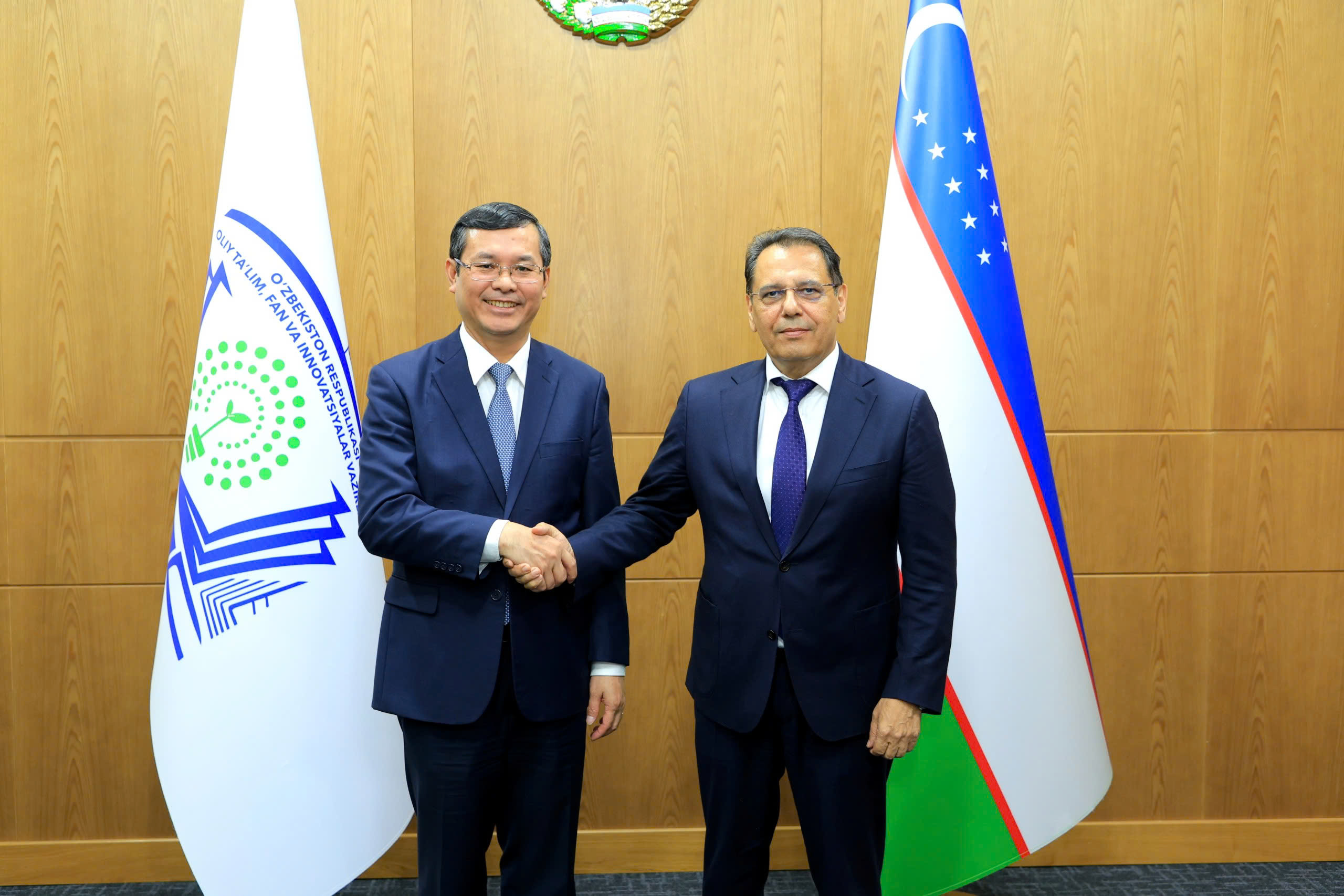 Thứ trưởng Nguyễn Văn Phúc và Bộ trưởng Bộ Giáo dục đại học, Khoa học và Đổi mới Cộng hòa Uzbekistan, ngài Kongratbay Sharipov