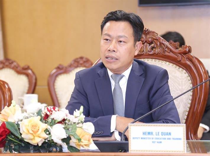 Thứ trưởng Lê Quân bày tỏ vui mừng được đón tiếp đoàn công tác của Thứ trưởng Bộ Khoa học và Giáo dục đại học Liên bang Nga. Đồng thời khẳng định, đây là dịp quan trọng để hai bên trao đổi, góp phần thắt chặt hơn nữa quan hệ hợp tác hiệu quả, thực chất giữa hai bên trong lĩnh vực giáo dục và đào tạo.