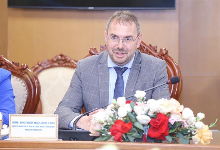 Thứ trưởng Bộ Khoa học và Giáo dục đại học Liên bang Nga Mogilevsky K.I trao đổi tại buổi tiếp