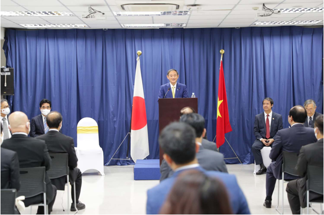 Phát biểu tại đây, Thủ tướng Nhật Bản Suga Yoshihide cho rằng, Trường ĐH Việt Nhật được thành lập trên cơ sở sự đồng thuận giữa các lãnh đạo cấp cao của Nhật Bản và Việt Nam, là biểu tượng cho sự hợp tác Nhật Bản - ASEAN, đặc biệt trong lĩnh vực đào tạo nguồn nhân lực toàn cầu cho thế hệ tiếp theo.
