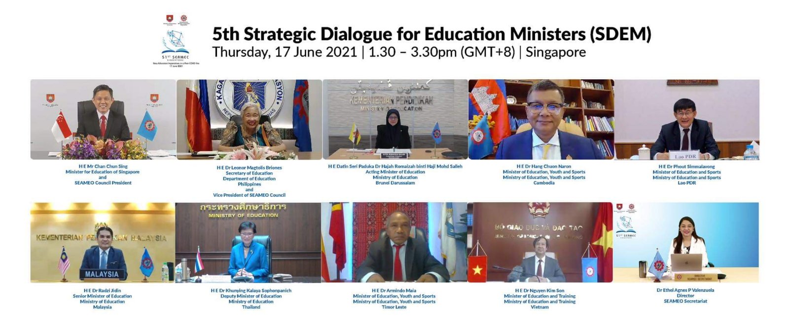 Theo tuyên bố chung này, các Quốc gia thành viên của Tổ chức Bộ trưởng Giáo dục Đông Nam Á (SEAMEO) đã cùng tham dự Đối thoại Chiến lược của các Bộ trưởng Giáo dục lần thứ 5 (SDEM 5), xem xét các sáng kiến khu vực và nhận thấy sự cần thiết xây dựng các khuyến nghị chung.