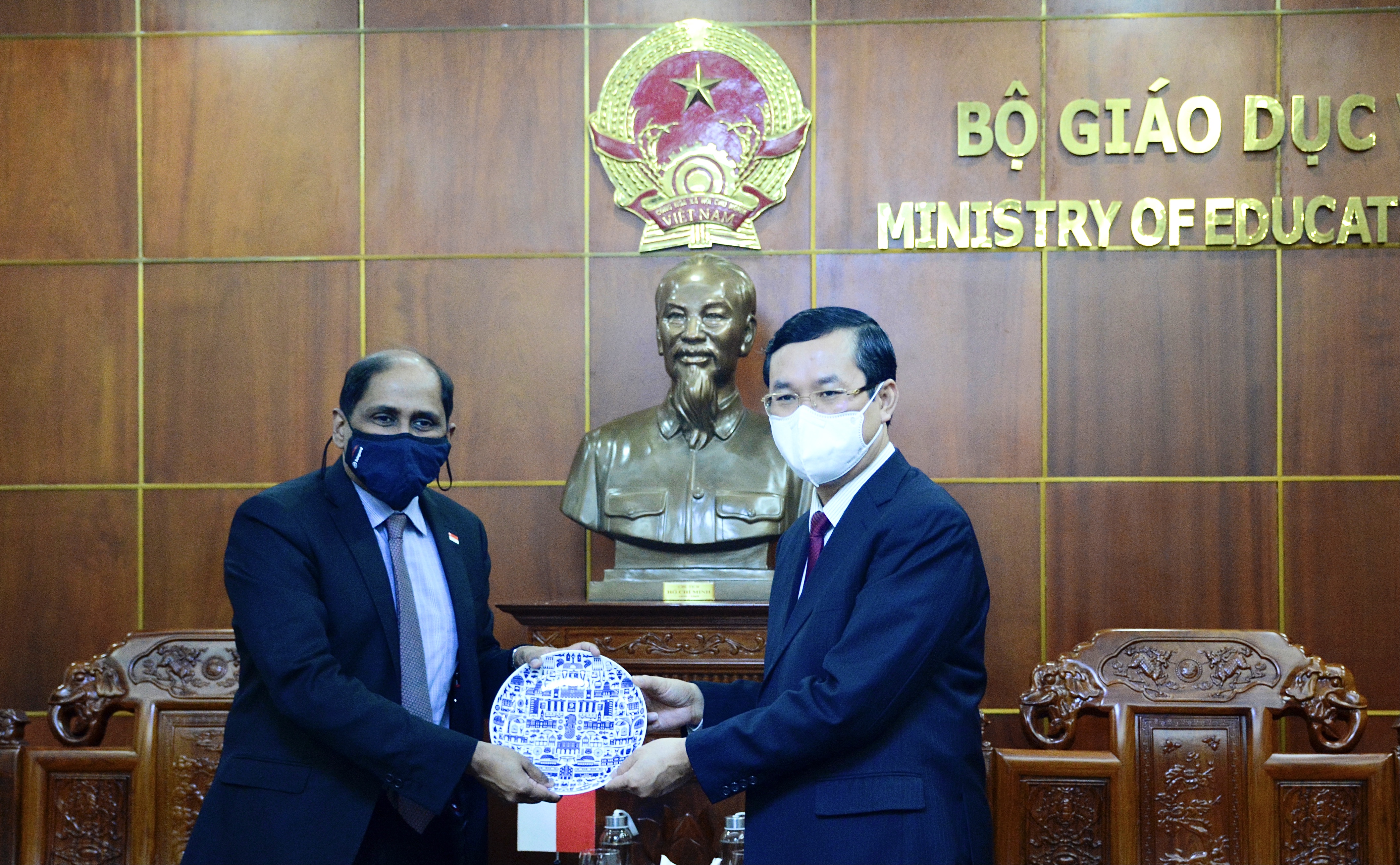 Ghi nhận những trao đổi, mong muốn của Thứ trưởng Nguyễn Văn Phúc, ngài Jaya Ratnam khẳng định Singapore rất coi trọng hợp tác giáo dục và đào tạo với Việt Nam. Ngài Đại sứ cũng gửi lời cảm ơn Việt Nam đã đặc biệt ủng hộ Singapore trong nhiệm kỳ Chủ tịch Hội đồng Bộ trưởng Giáo dục các nước Đông Nam Á 2021-2022.