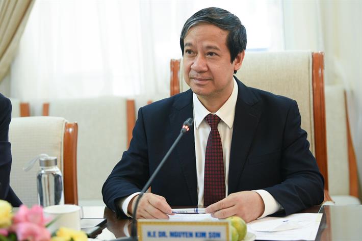 Chào mừng Tiến sĩ Philipp Rosler, nguyên Phó Thủ tướng Đức, Lãnh sự danh dự của Việt Nam tại Thụy Sĩ đến thăm, làm việc với Bộ GDĐT, Bộ trưởng Nguyễn Kim Sơn bày tỏ vui mừng được tiếp nối những trao đổi về hợp tác giáo dục và đào tạo đã được đề cập trước đó nhân chuyến thăm của Chủ tịch nước Nguyễn Xuân Phúc tới Thụy Sĩ vào tháng 11 năm 2021.