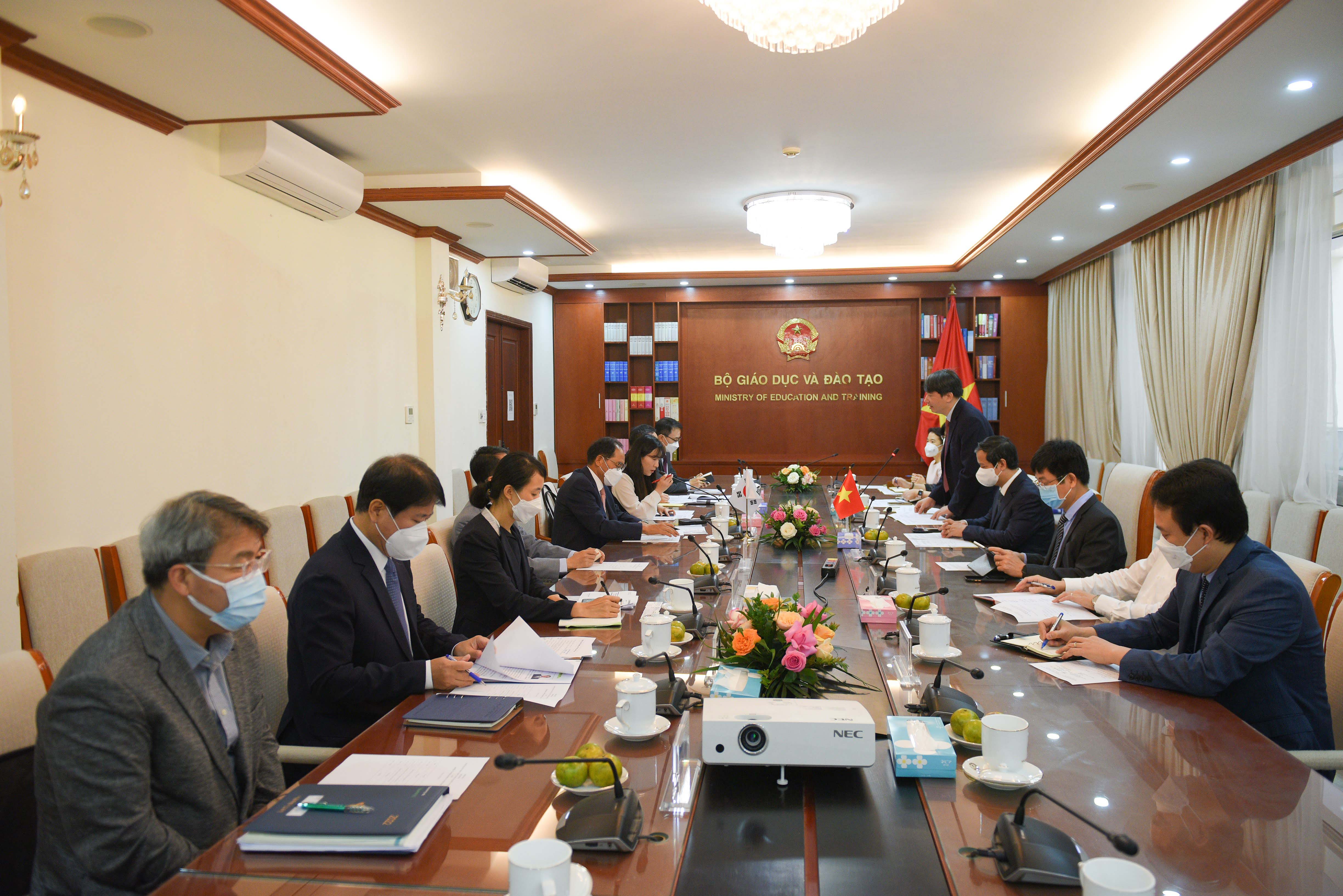 Đối với việc triển khai thực hiện Thỏa thuận dạy thí điểm tiếng Hàn tại các trường phổ thông Việt Nam, Bộ trưởng đề nghị phía Hàn Quốc tiếp tục hỗ trợ biên soạn sách giáo khoa theo các thỏa thuận đã ký. Trong giai đoạn tiếp theo, Bộ trưởng mong muốn Hàn Quốc hỗ trợ đưa giáo viên bản ngữ sang giảng dạy tại Việt Nam, tập huấn giáo viên, xây dựng học liệu, trao đổi văn hóa, giao lưu kết nghĩa giữa các trường phổ thông để việc dạy tiếng Hàn đạt chất lượng.