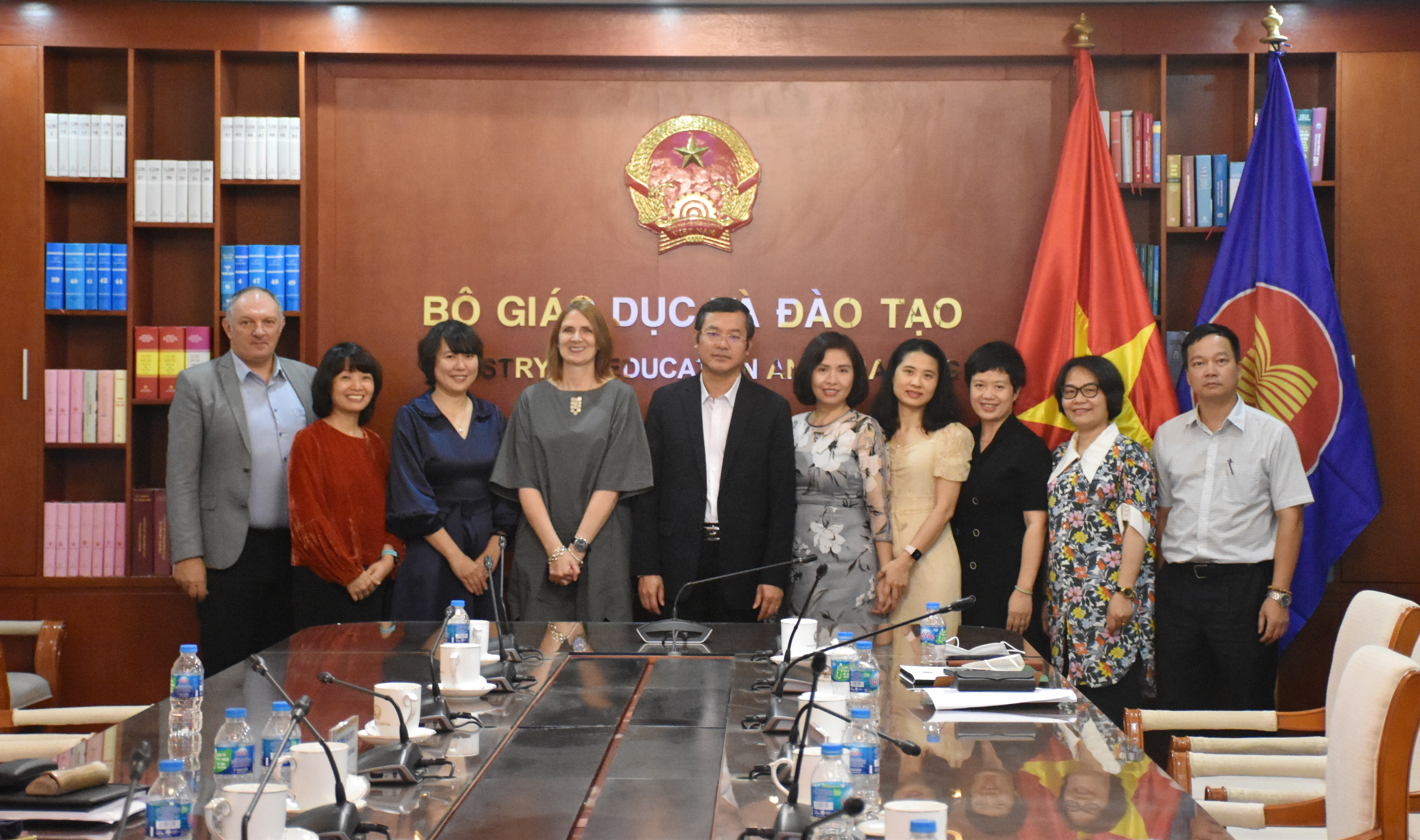 Tại buổi làm việc, bà Donna Mc Gowan, Tổng Giám đốc Hội đồng Anh tại Việt Nam báo cáo kết quả hoạt động hợp tác giữa Bộ GDĐT và Hội đồng Anh trong ba năm qua, kể từ khi ký Bản hợp tác (MOC) năm 2019 và mới ký lại bản hợp tác năm 2021 tại Edinbourgh, Anh nhân dịp Thủ tướng Chính phủ Việt Nam tham dự Hội nghị lần thứ 26 các bên tham gia Công ước khung của Liên hợp quốc về biến đổi khí hậu (COP26).