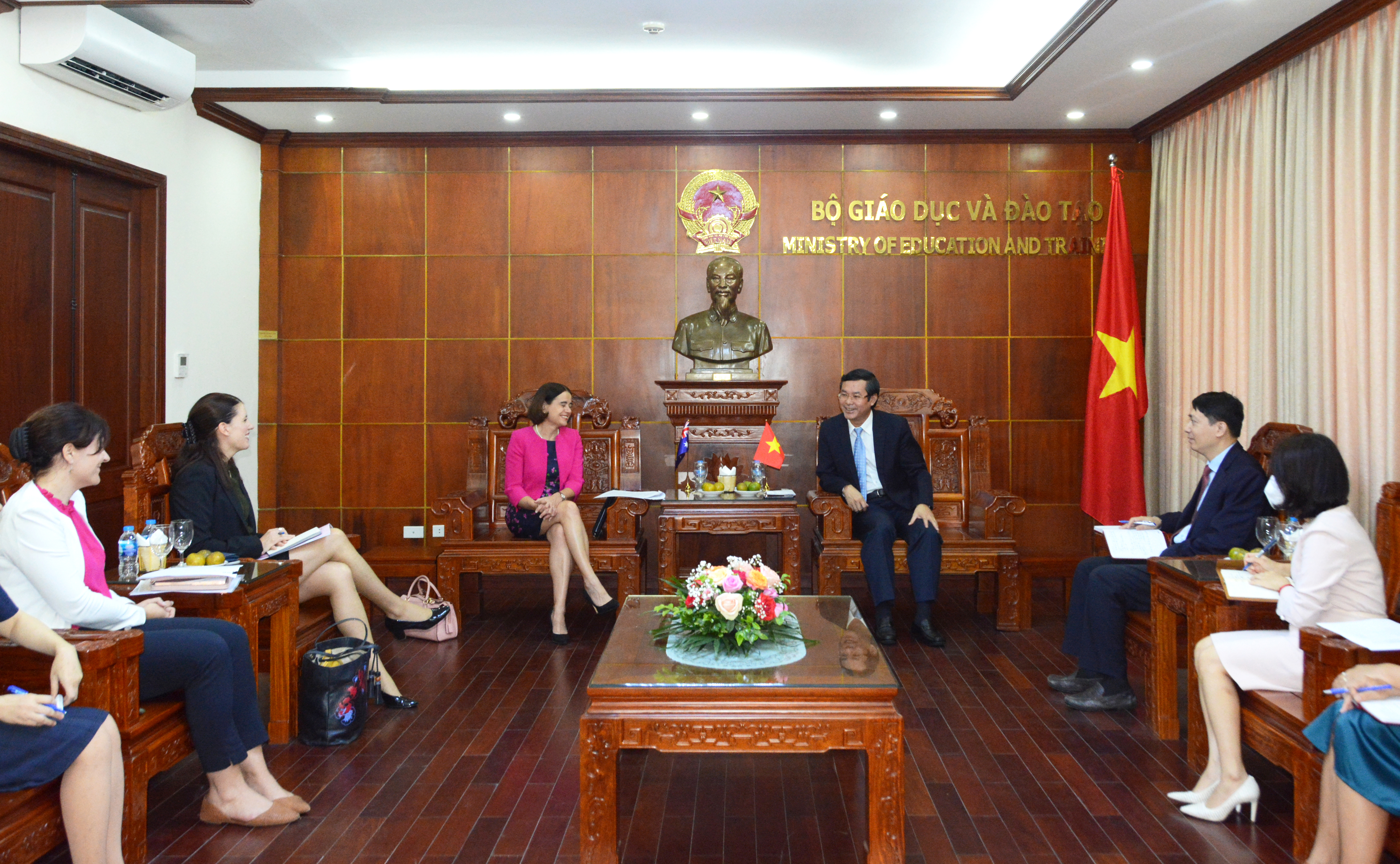 Kết thúc buổi tiếp, Thứ trưởng Nguyễn Văn Phúc gửi lời chúc sức khoẻ và thành công tới Đại sứ Robyn Mudie cũng như mong muốn bà sẽ tiếp tục là cầu nối cho phát triển quan hệ hợp tác giáo dục giữa hai nước.