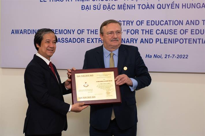 Chiều 21/7, tại Bộ Giáo dục và Đào tạo, Bộ trưởng Nguyễn Kim Sơn đã có buổi tiếp và trao tặng Kỷ niệm chương “Vì sự nghiệp giáo dục” cho ngài Ory Csaba, Đại sứ Đặc mệnh toàn quyền Hungary tại Việt Nam, trước khi ngài Đại sứ kết thúc nhiệm kỳ 7 năm công tác tại Việt Nam.