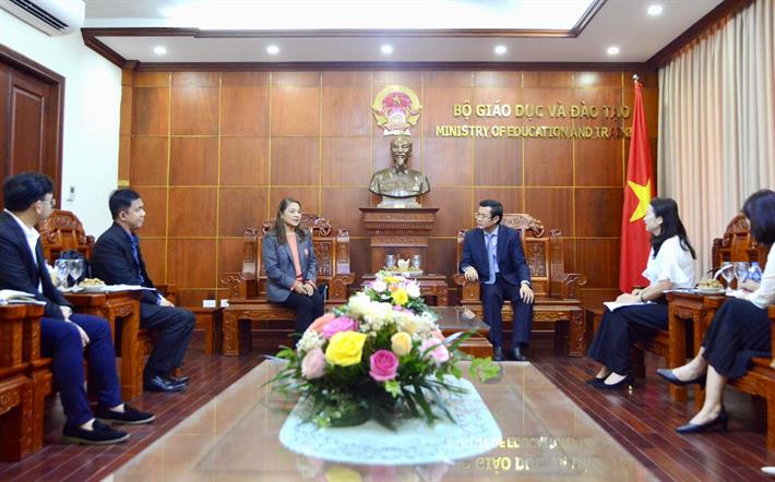 Cùng dự buổi làm việc có TS Lê Thị Mỹ Hà, Giám đốc Trung tâm khu vực về Học tập suốt đời của SEAMEO tại Việt Nam (SEAMEO CELLL); bà Nguyễn Thị Thanh Minh, Phó Cục trưởng Cục Hợp tác quốc tế (Bộ GDĐT).