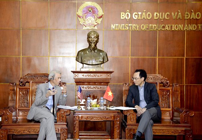 Tại buổi tiếp, Thứ trưởng Hoàng Minh Sơn và ông Timothy Rieser đã cùng thảo luận, trao đổi một số nội dung cụ thể hai bên cùng quan tâm, mong muốn hợp tác trong lĩnh vực giáo dục và đào tạo như: hợp tác giữa các trường đại học, trao đổi sinh viên, giảng viên; xây dựng, đổi mới các chương trình học; hợp tác nghiên cứu; hỗ trợ học bổng cho học sinh có hoàn cảnh khó khăn.