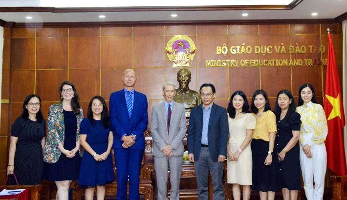 Các đại diện từ Bộ GDĐT Việt Nam cùng phái đoàn Hoa Kỳ chụp ảnh lưu niệm