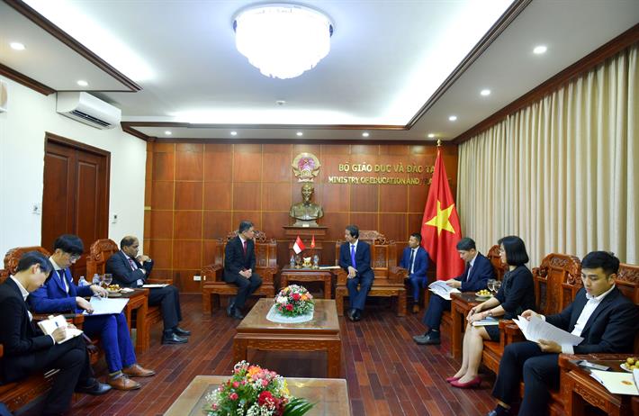 Bộ trưởng Nguyễn Kim Sơn tiếp với Bộ trưởng Giáo dục Singapore