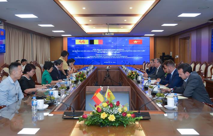 Bộ trưởng Nguyễn Kim Sơn tiếp Bộ trưởng - Thủ hiến Chính phủ Cộng động người Bỉ nói tiếng Pháp
