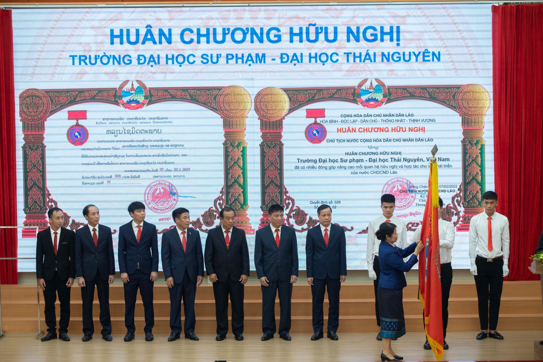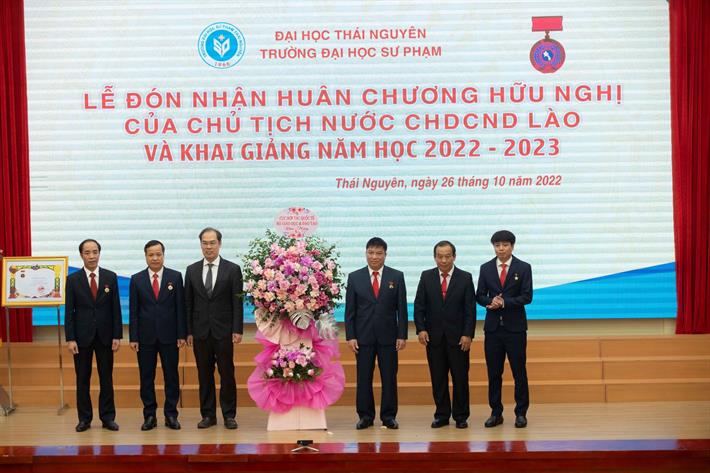 Thừa ủy quyền của Chủ tịch nước Cộng hòa Dân chủ Nhân dân Lào, Thứ trưởng Bộ Giáo dục và Thể thao Lào Sỉ Súc Vông Vi Chít đã trao Huân chương Hữu nghị của Nhà nước Lào tặng tập thể Trường Đại học Sư phạm - Đại học Thái Nguyên và 3 cá nhân vì đã có thành tích đóng góp tích cực trong việc hợp tác đào tạo nguồn nhân lực cho Lào.